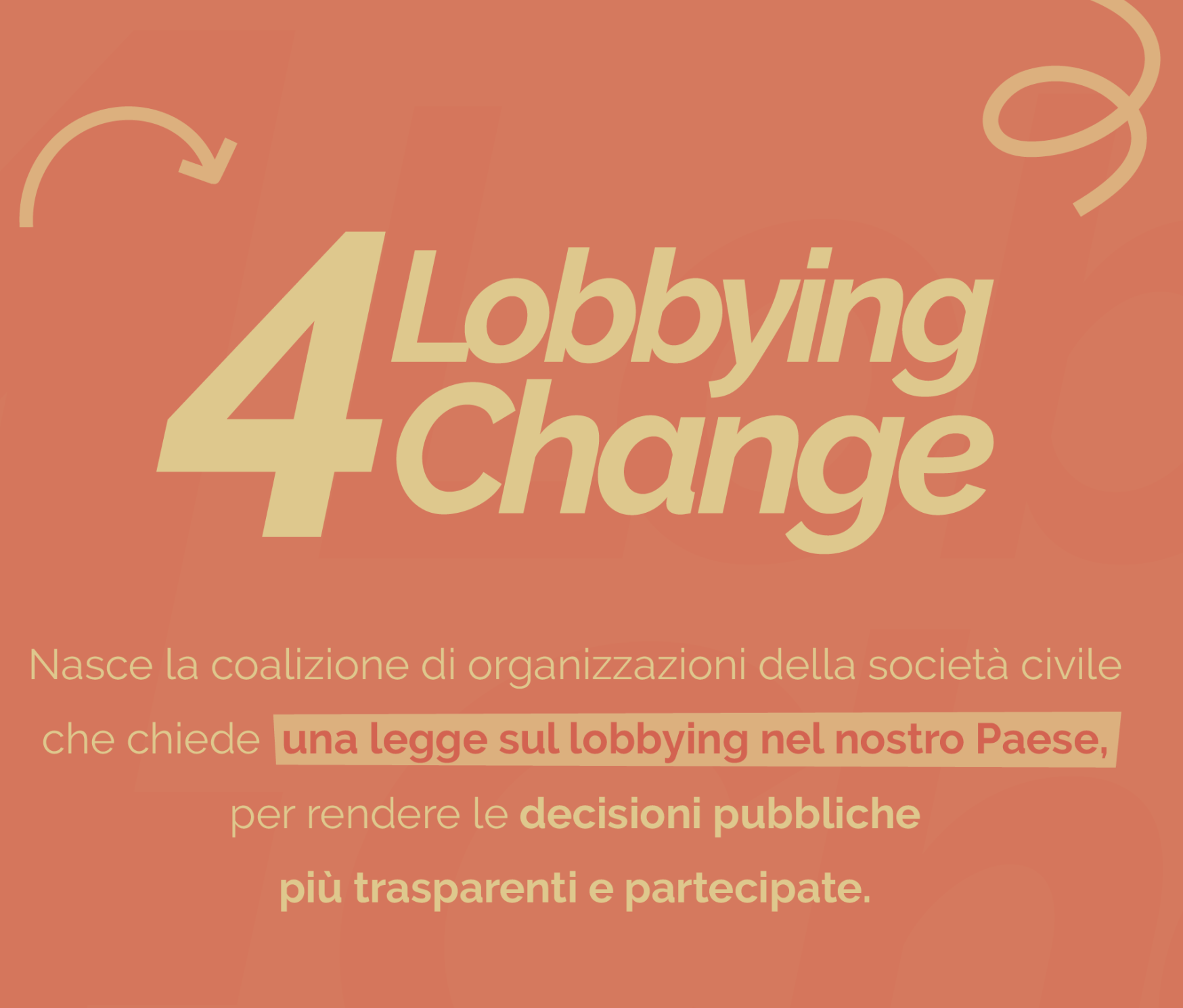 - un periodo di raffreddamento (cooling off) di 2 anni in cui i decisori pubblici, una volta cessato l’incarico, non possano svolgere attività di lobbying.